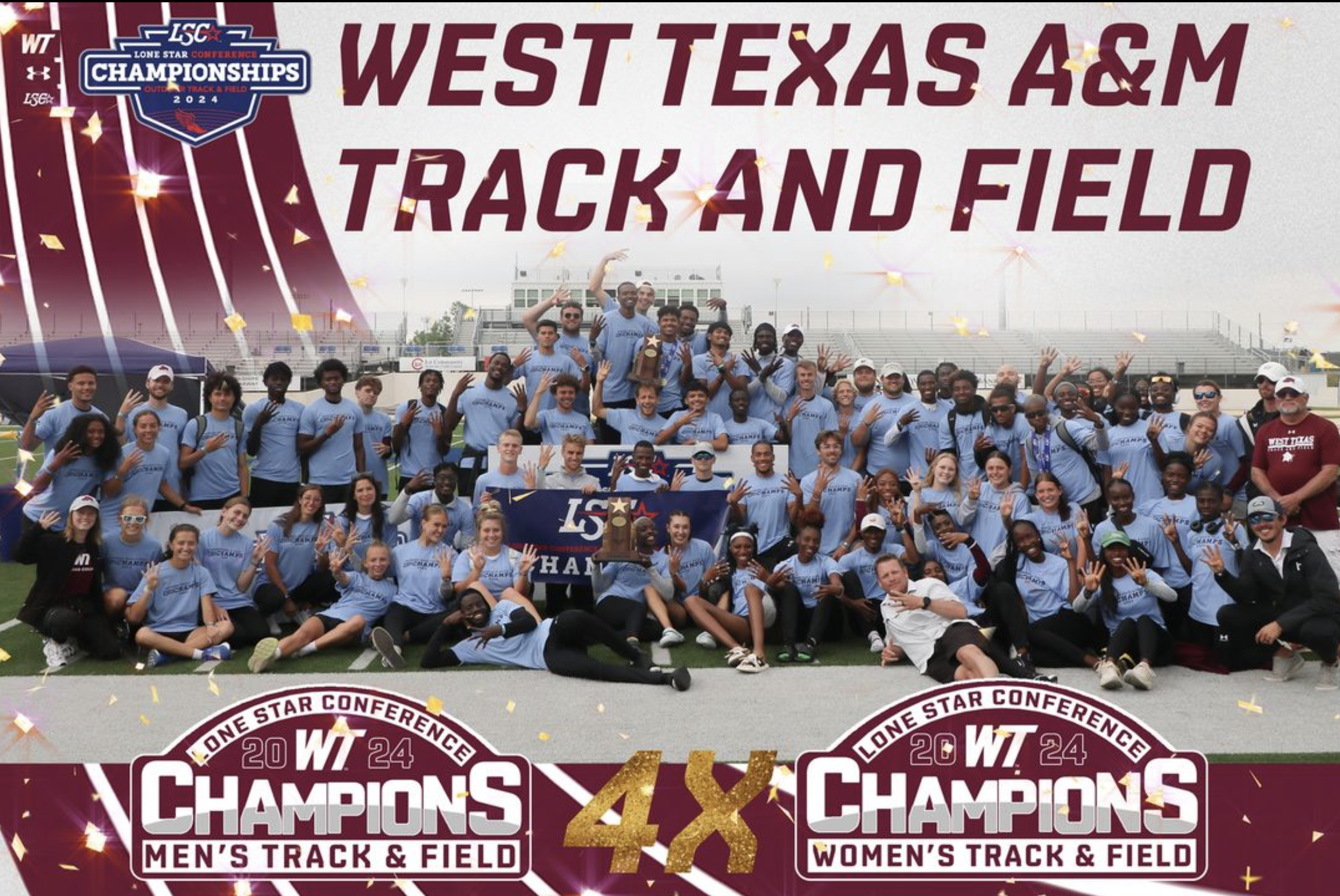 Both the Men's and Women's teams recently earned their fourth consecutive Lone Star Conference Outdoor titles. The Buffs racked up their highest point total in school history with 284.5 and the Lady Buffs earned their second highest point total ever with 274.